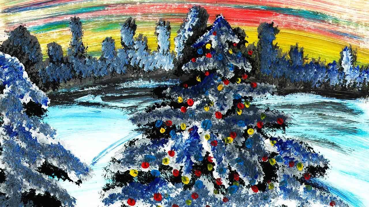 Зимняя елка красками