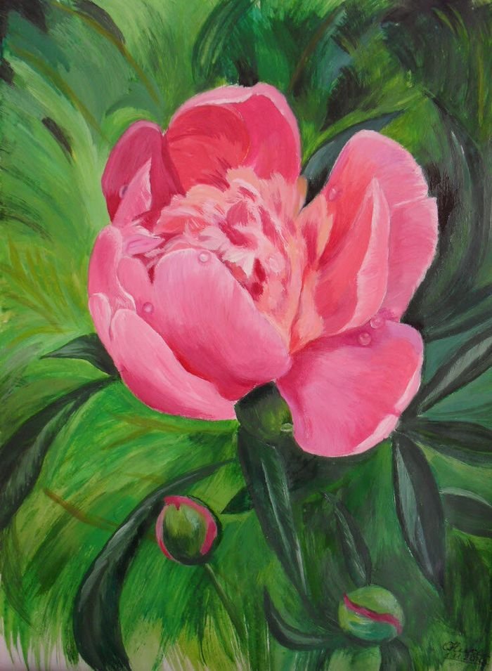 Пионы гуашь Кати Федоровой