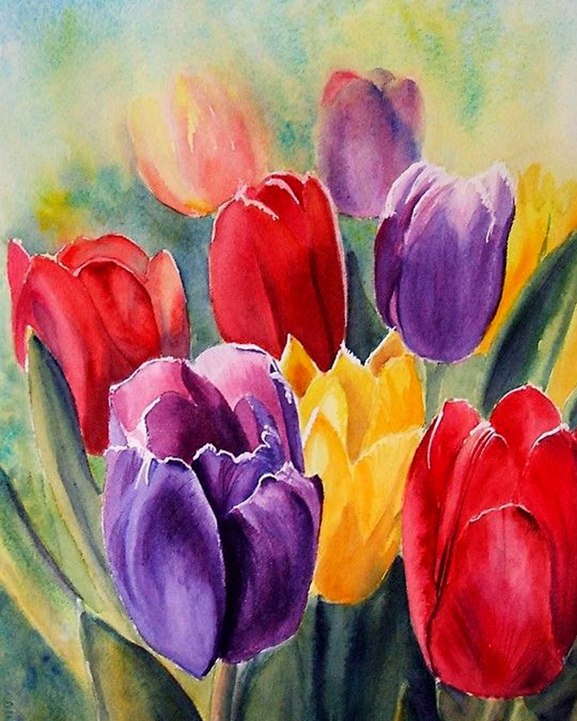 Тюльпаны акварелью