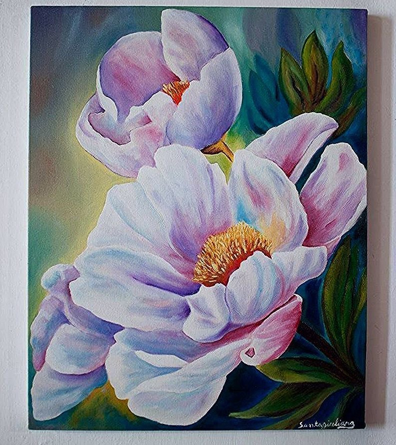![Цветы акрилом на холсте]()