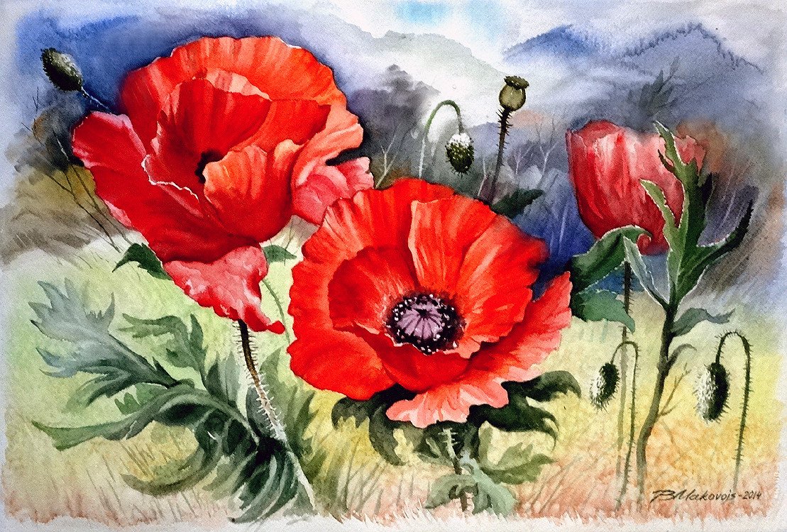 ![Маки правополушарное рисование гуашью]()