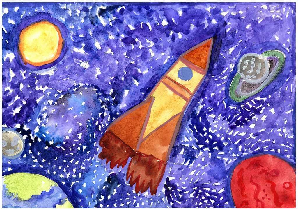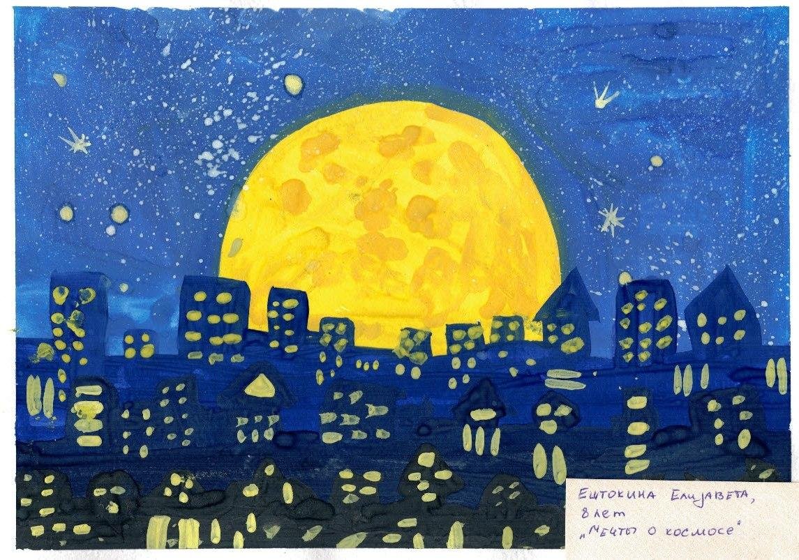![Работы с гуашью для детей космос]()