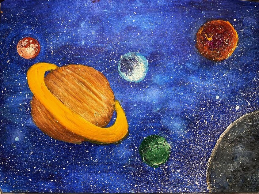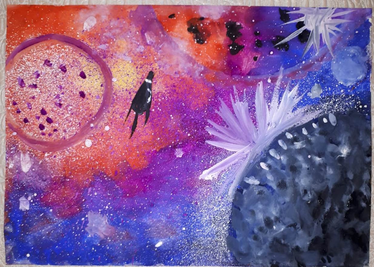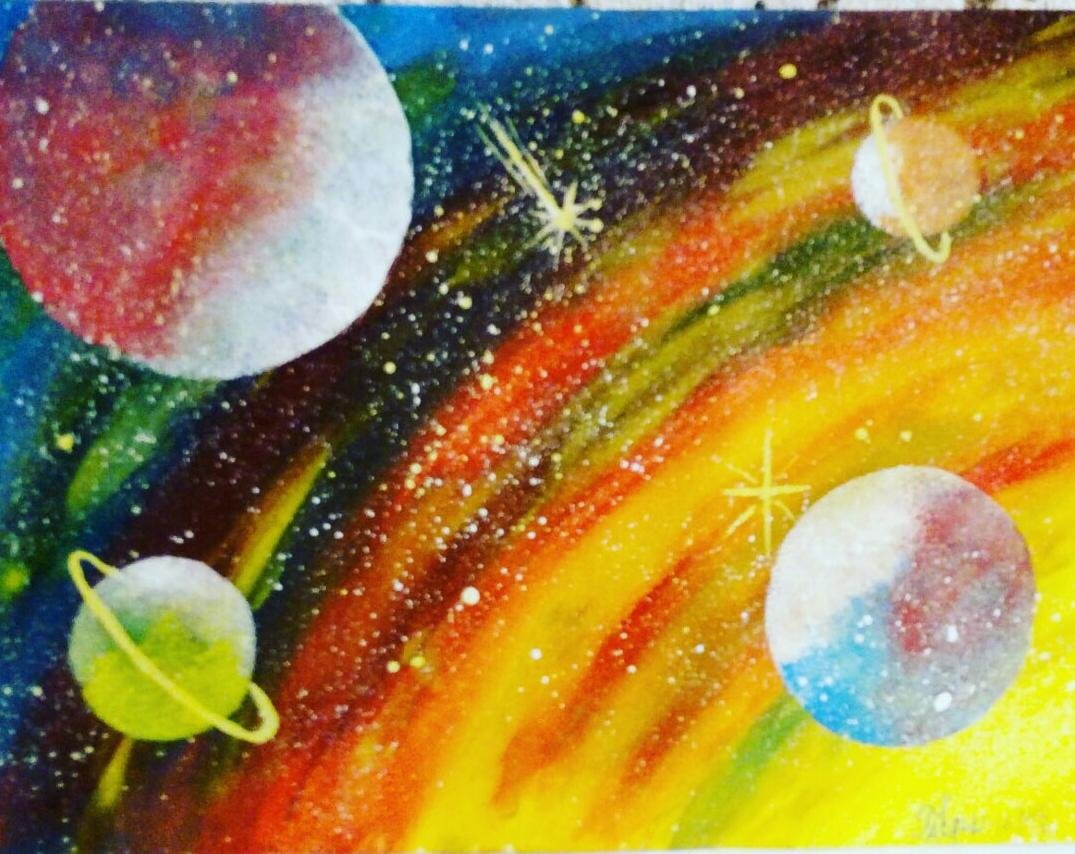![Космические просторы гуашью]()