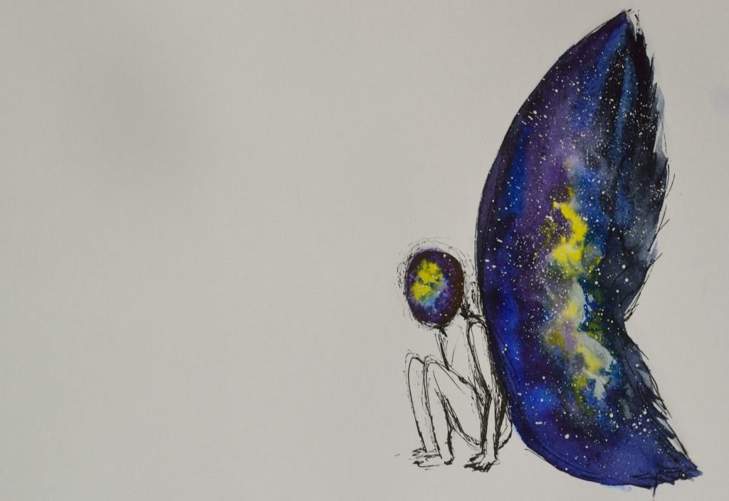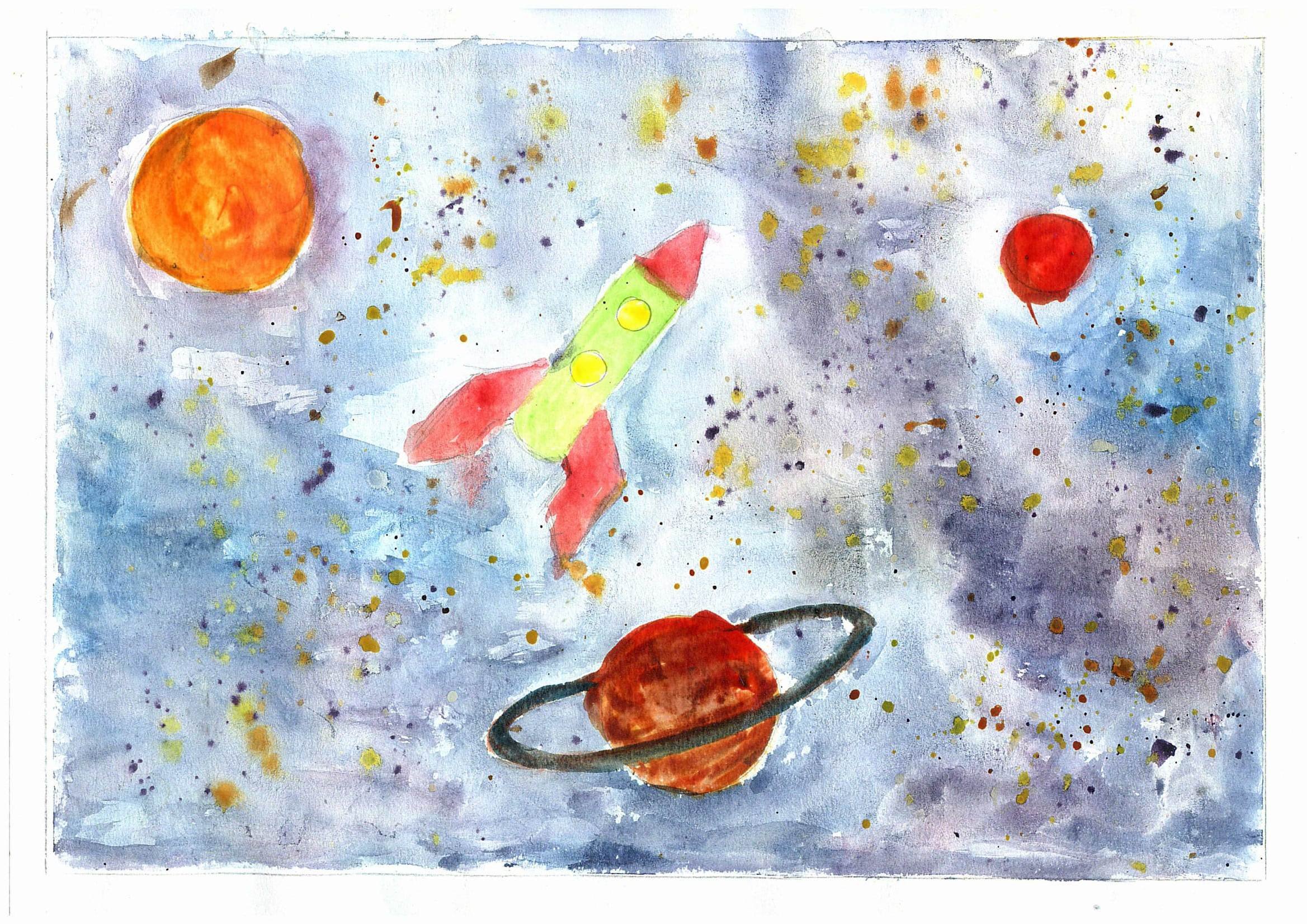 Космос рисунок акварелью