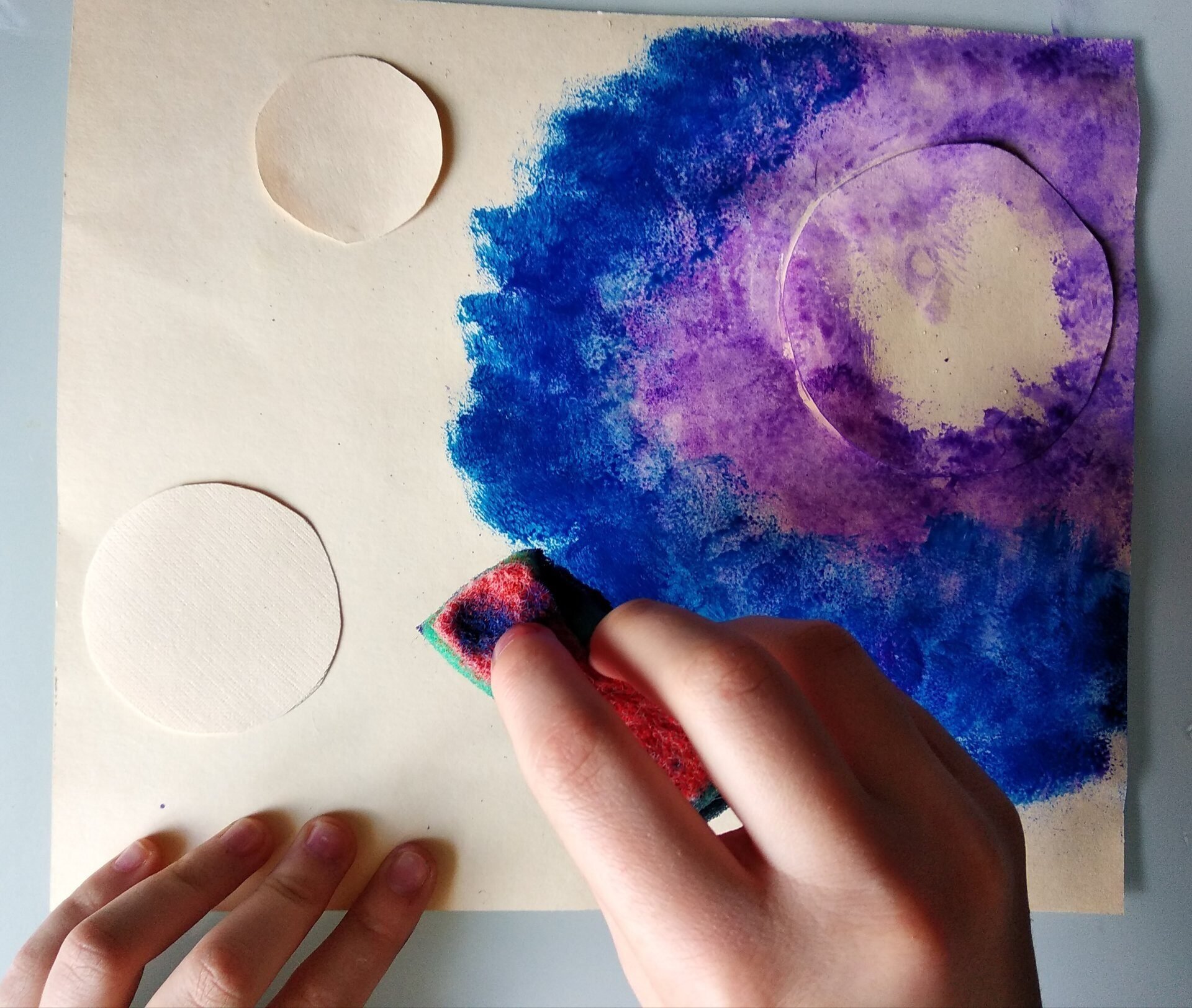 Космос гуашью и губкой