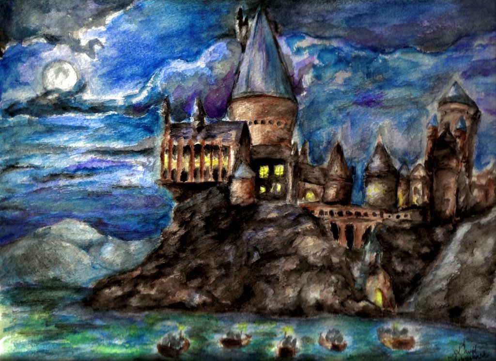 ![Гарри Поттер рисунок Хогвартс живопись]()