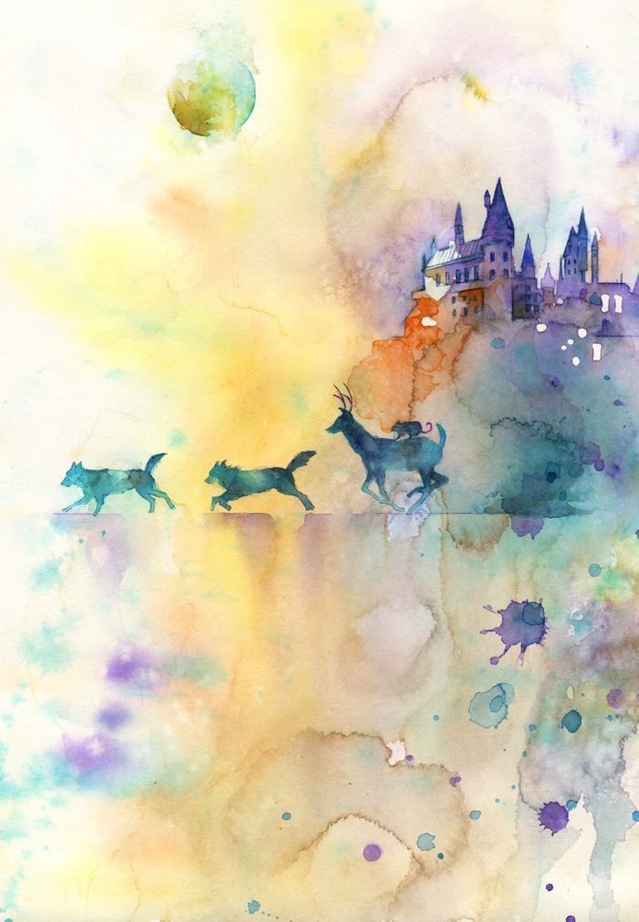 ![Гарри Поттер Хогвартс арт акварель]()