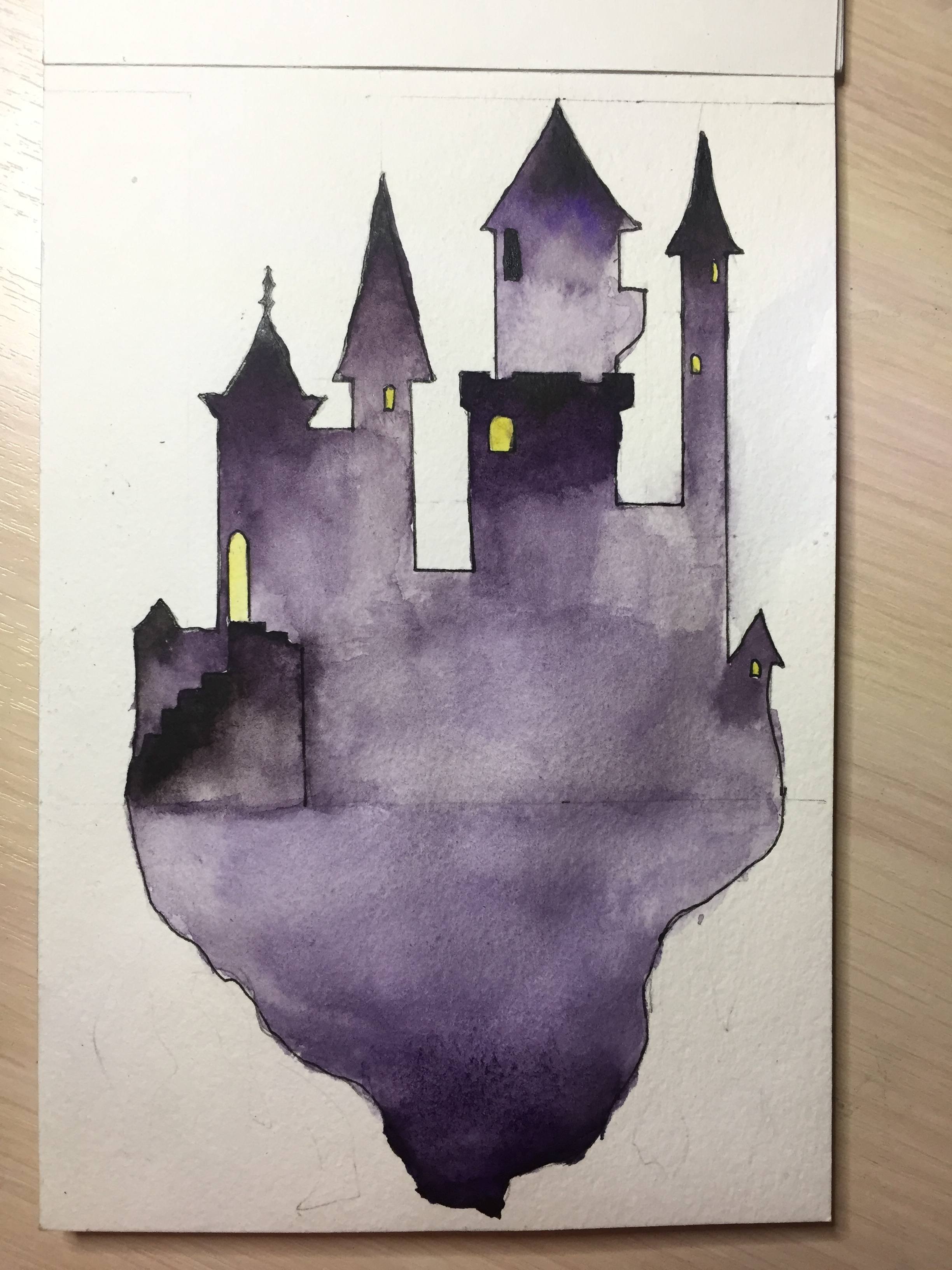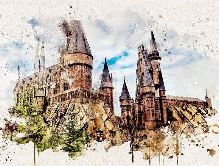 ![Замок Гарри Поттера акварель]()