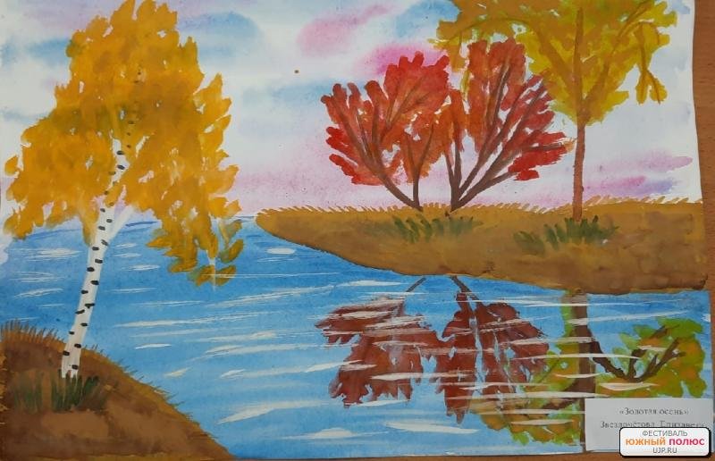 Осенний пейзаж гуашью для детей 6 лет