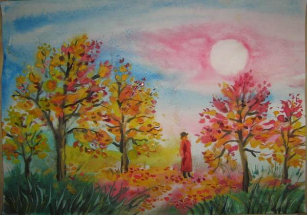 ![Рисование красками осень]()