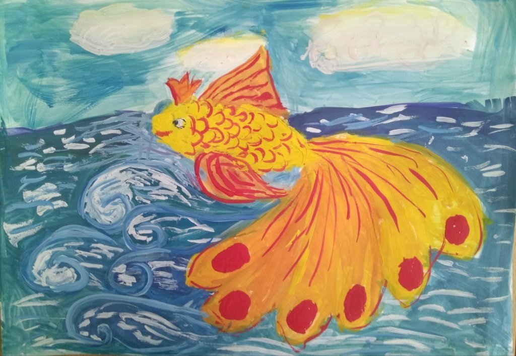 Рисунок к сказке Пушкина Золотая рыбка детский сад