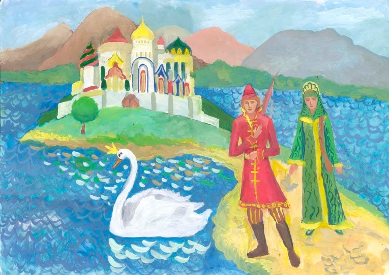 ![Рисунки по сказке Пушкина сказка о царе Салтане детские]()