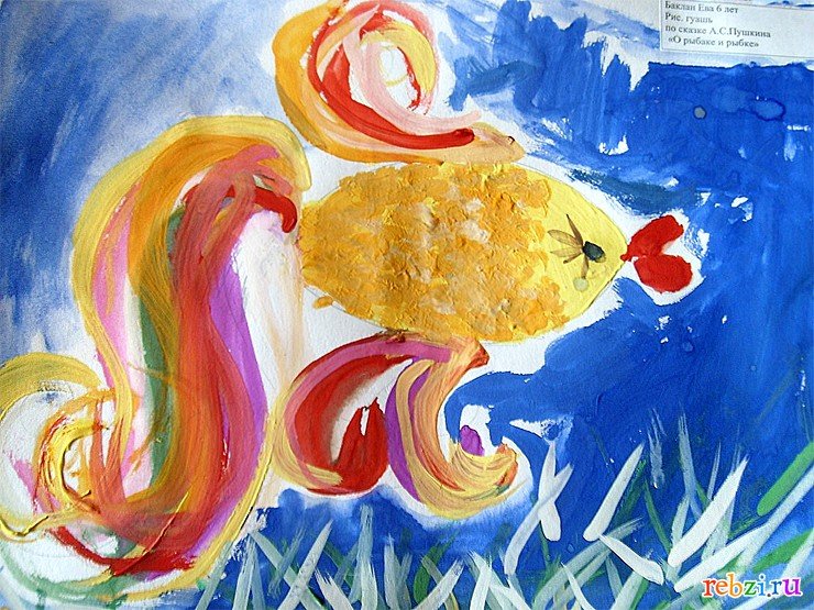 ![Рисунок к сказке Пушкина Золотая рыбка детский сад]()