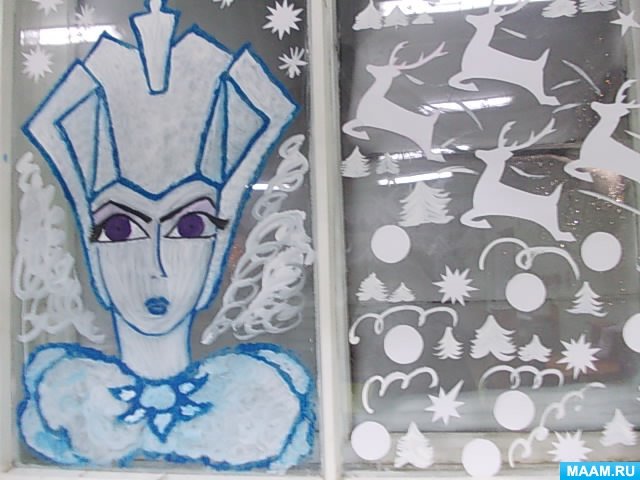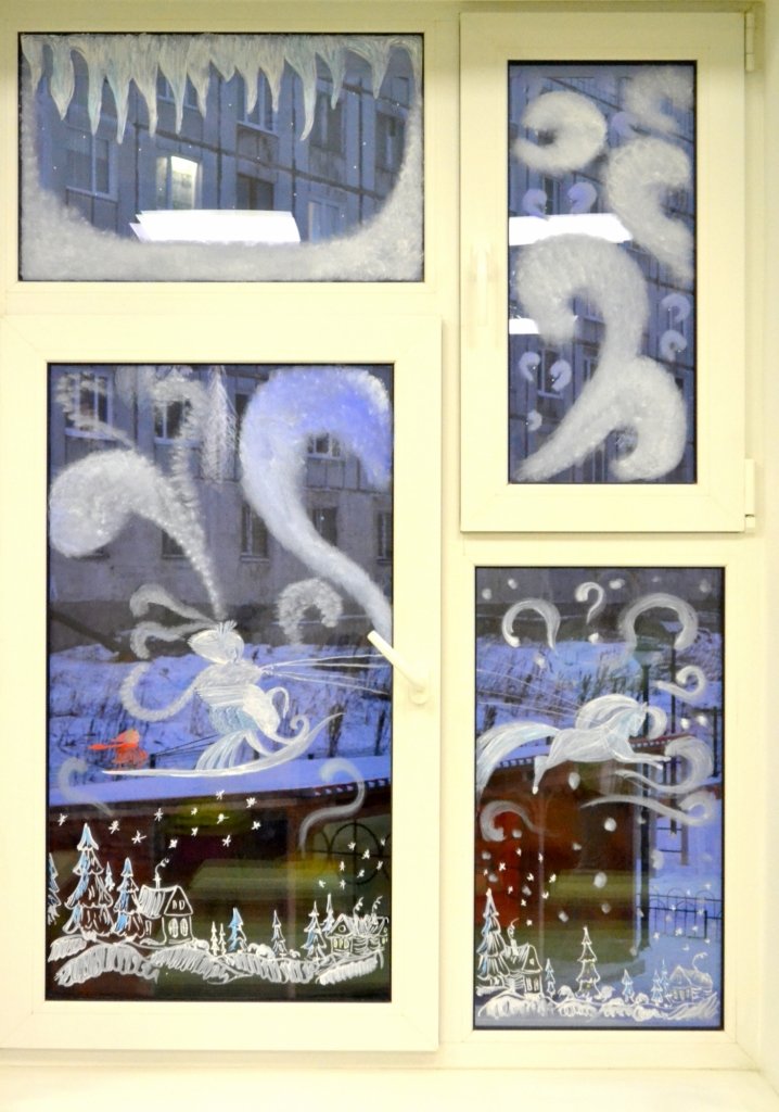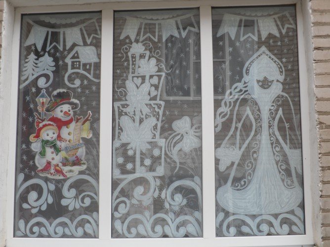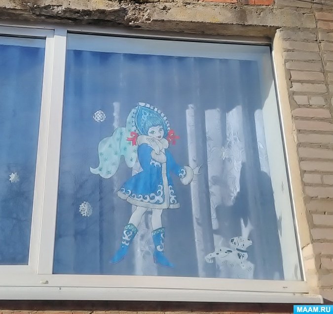 Украшение окон в детском саду гуашью