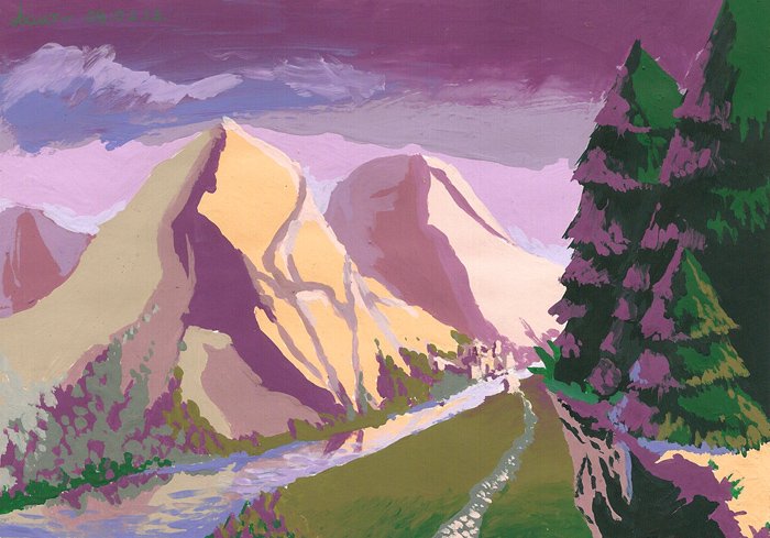 ![Горы гуашью]()