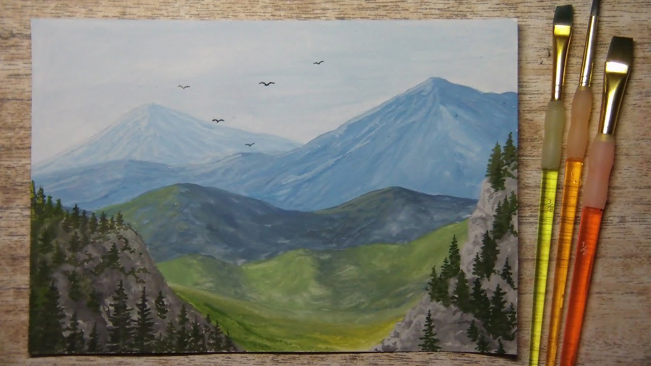 Пейзаж гуашью для начинающих горы