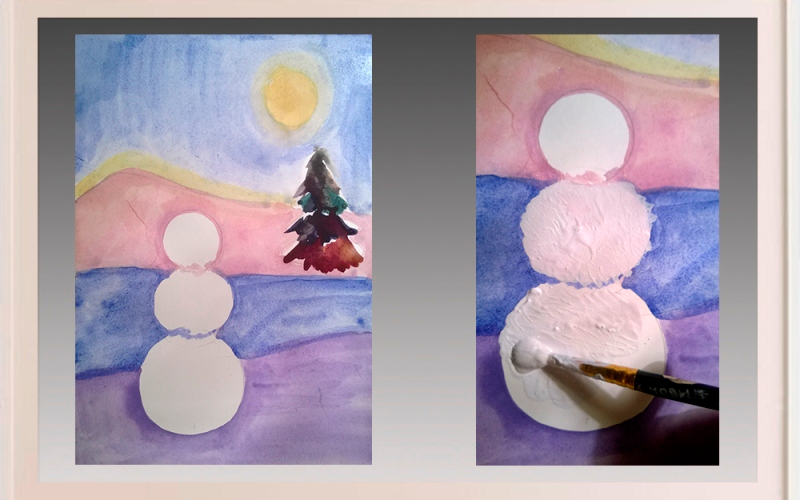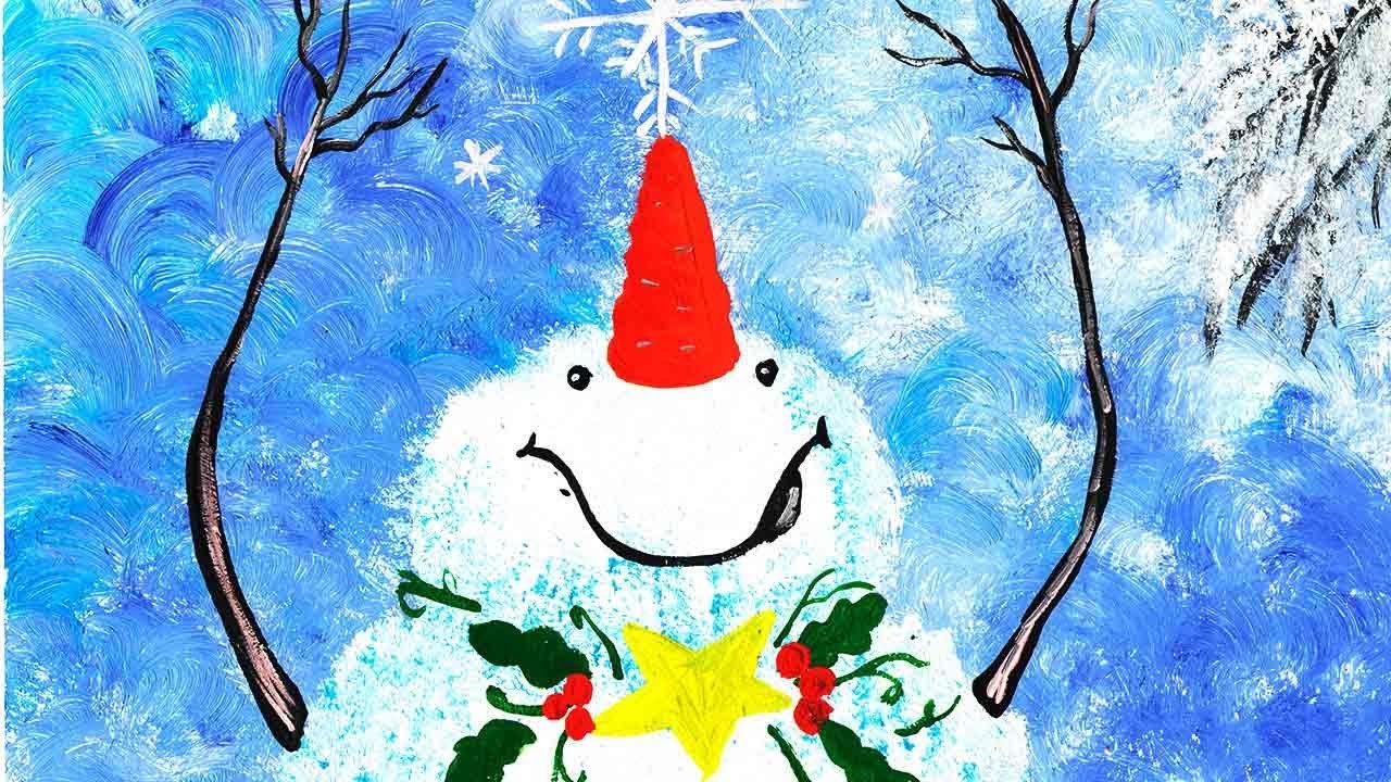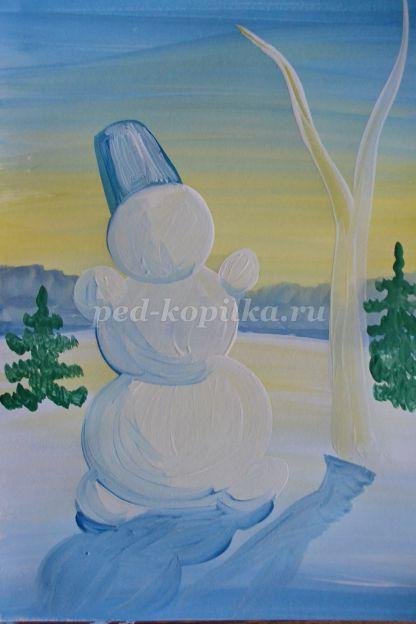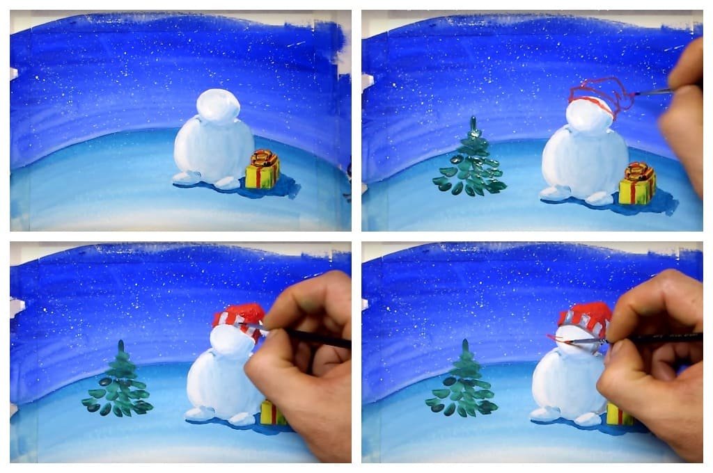 ![Новогодний рисунок гуашью для детей поэтапно]()