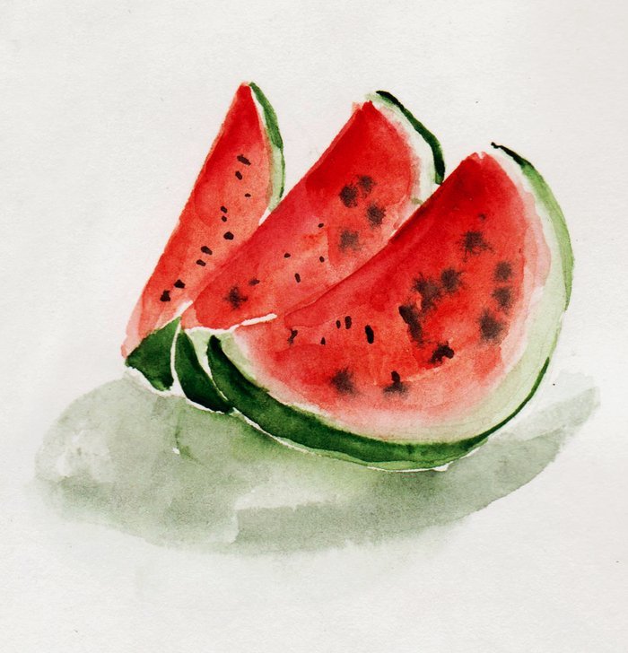 ![Арбуз акварелью]()