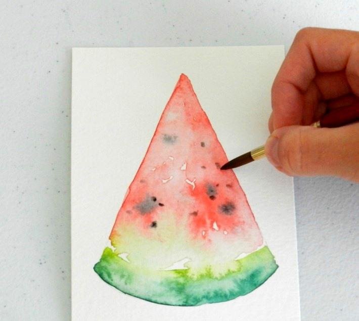 Арбуз акварелью для начинающих