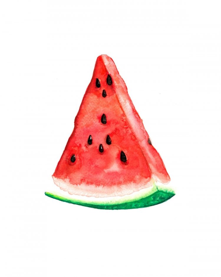 ![Кусочек арбуза акварелью]()