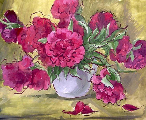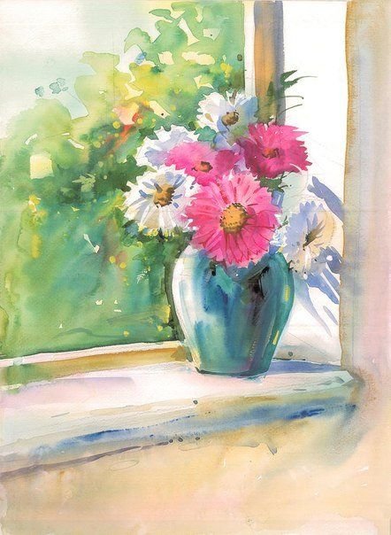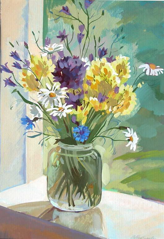 ![Уроки рисования гуашью полевые цветы в вазе]()