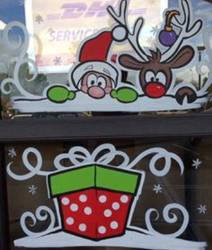 ![Рисунки на окнах на новый год 2022 гуашью]()
