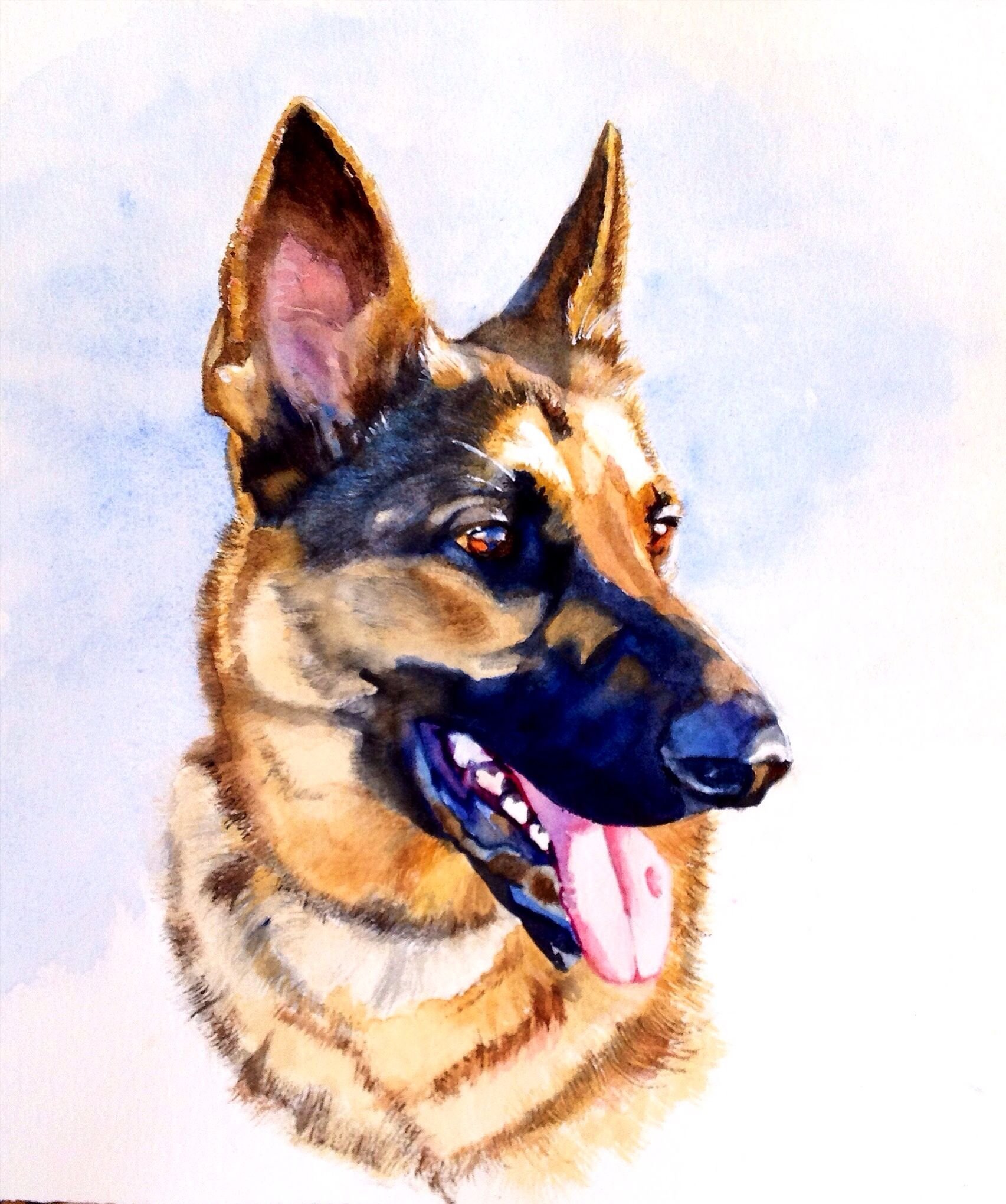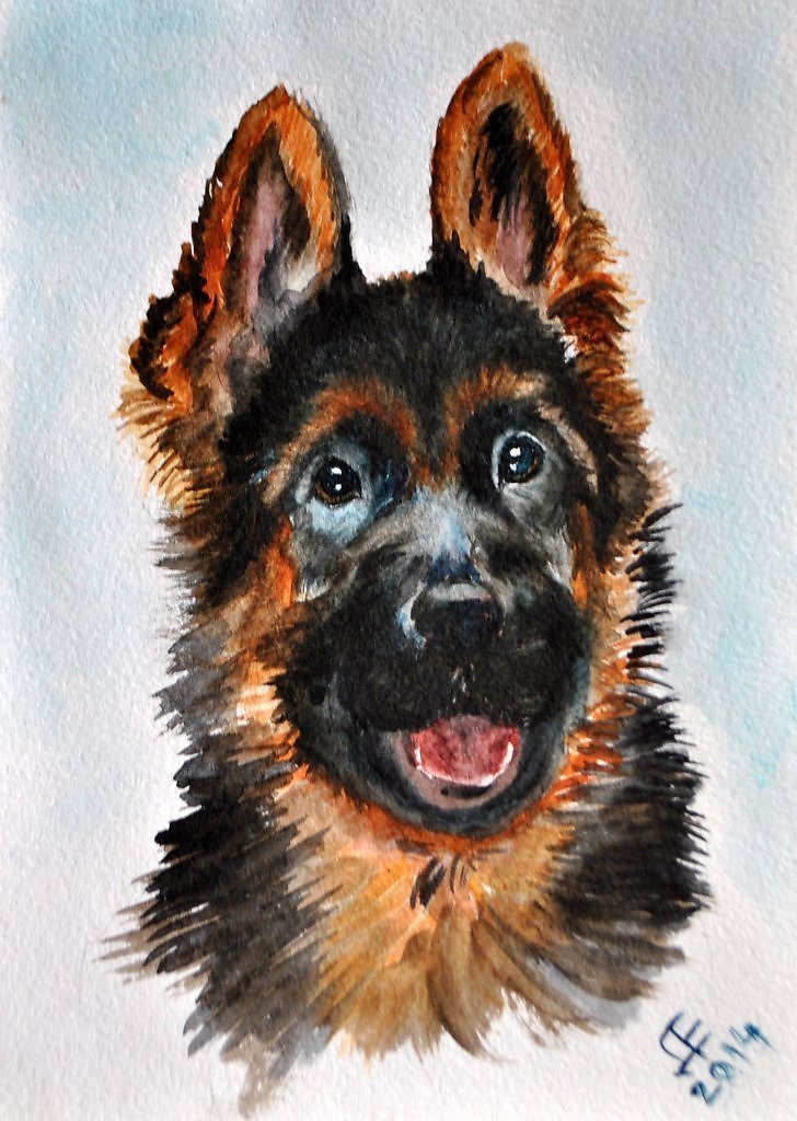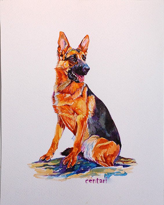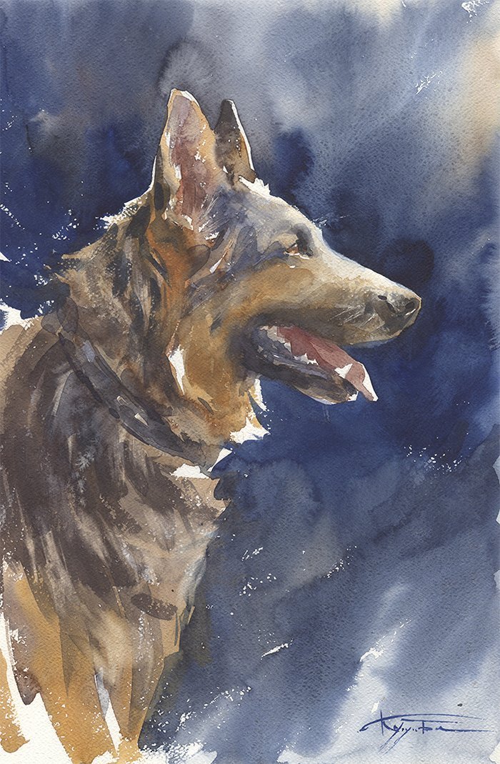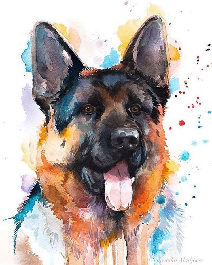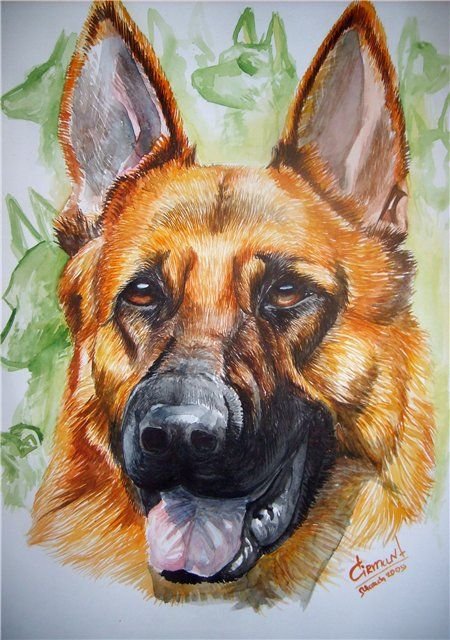 ![Немецкая овчарка акварелью]()