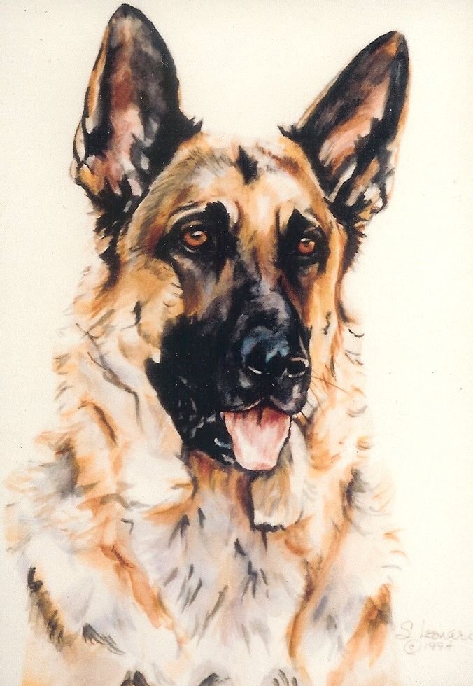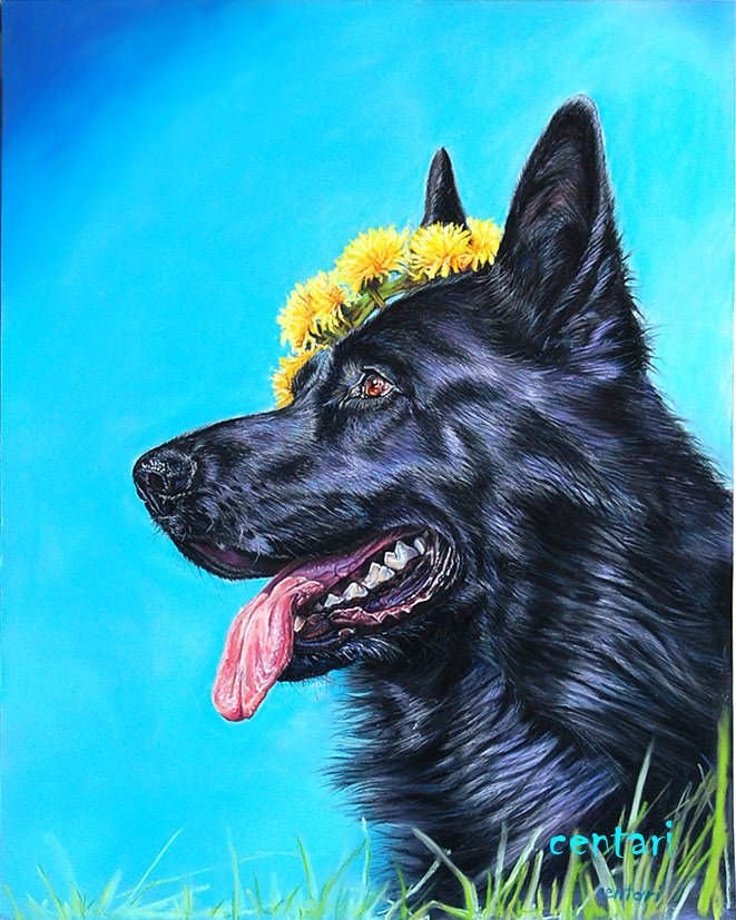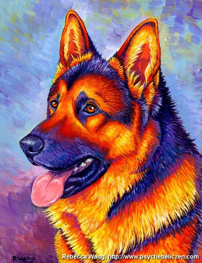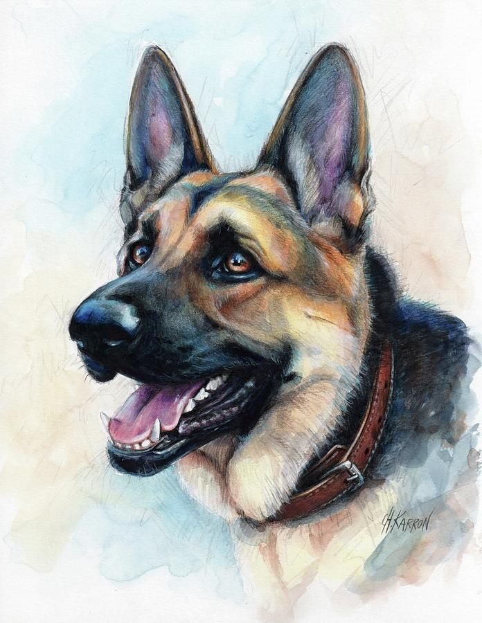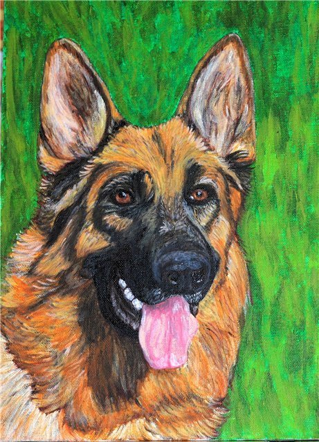 ![Немецкая овчарка портрет живопись]()