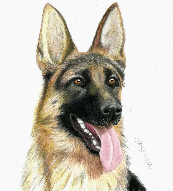 ![Немецкая овчарка цветными карандашами]()
