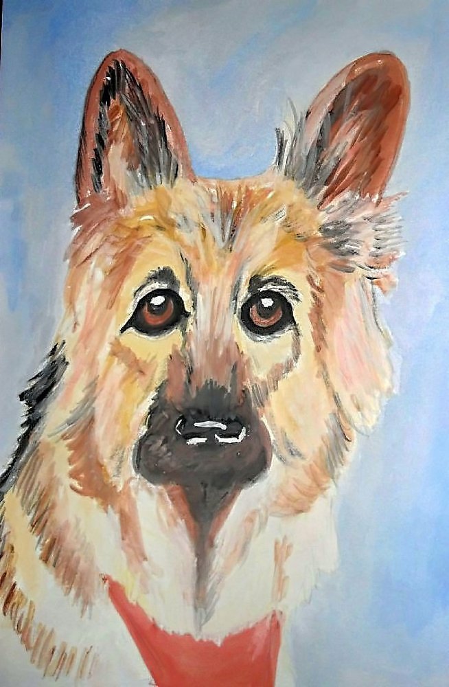 ![Немецкая овчарка в гуаш]()