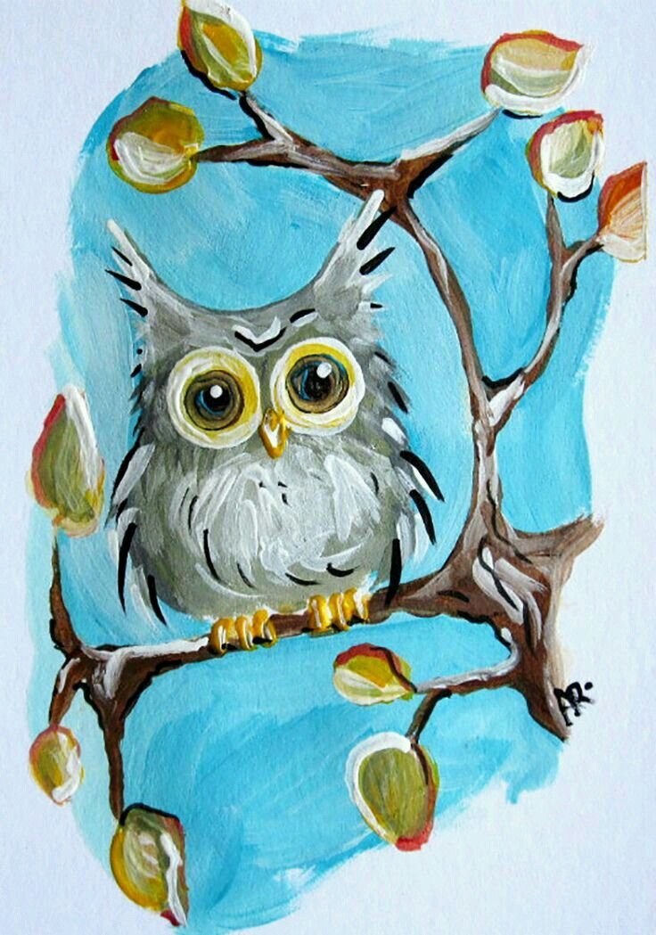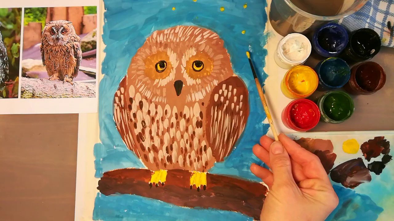 ![Сова рисование гуашью]()