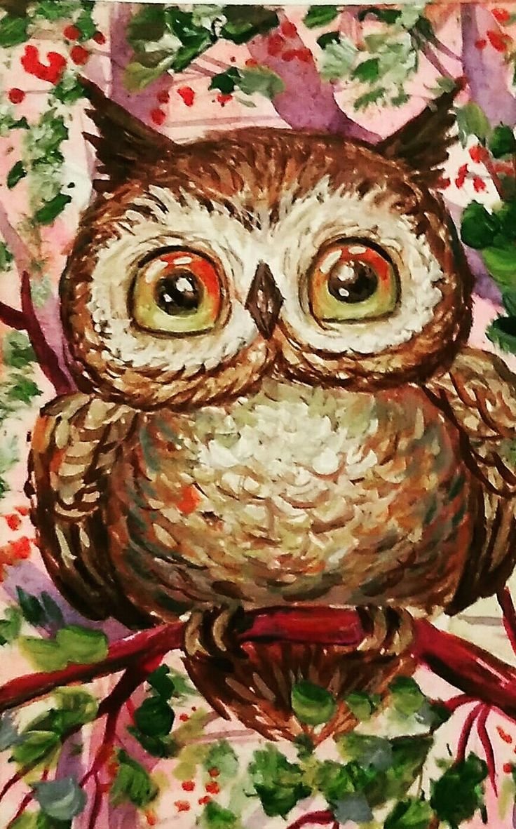 ![Сова живопись гуашью]()