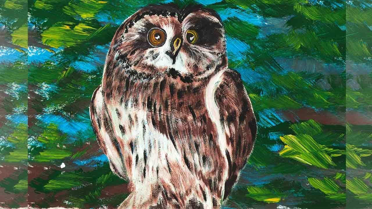 Сова рисование гуашью