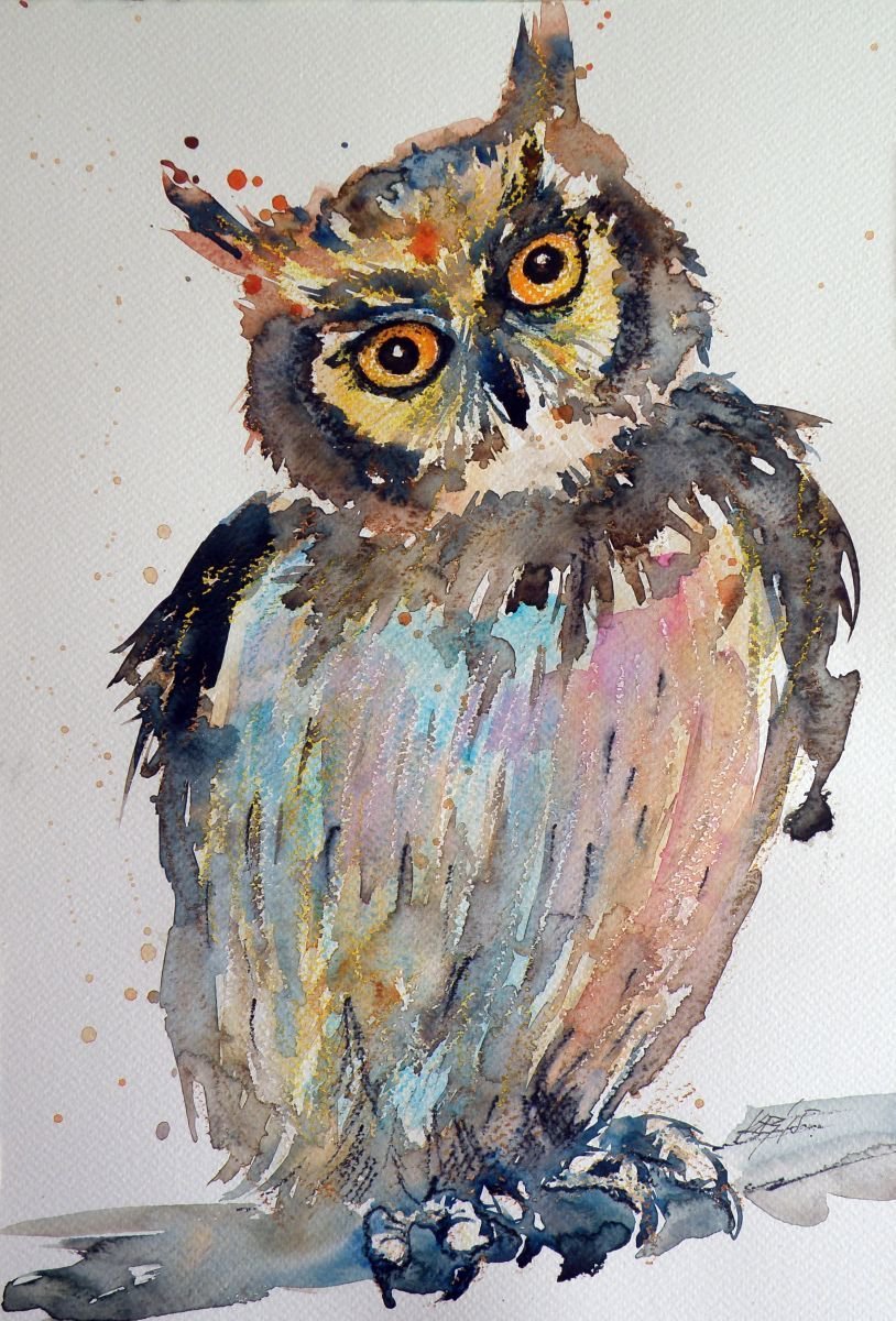 ![Сова акварельными красками]()