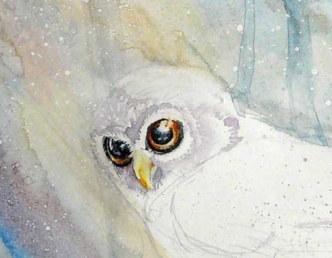 Сова акварельными красками