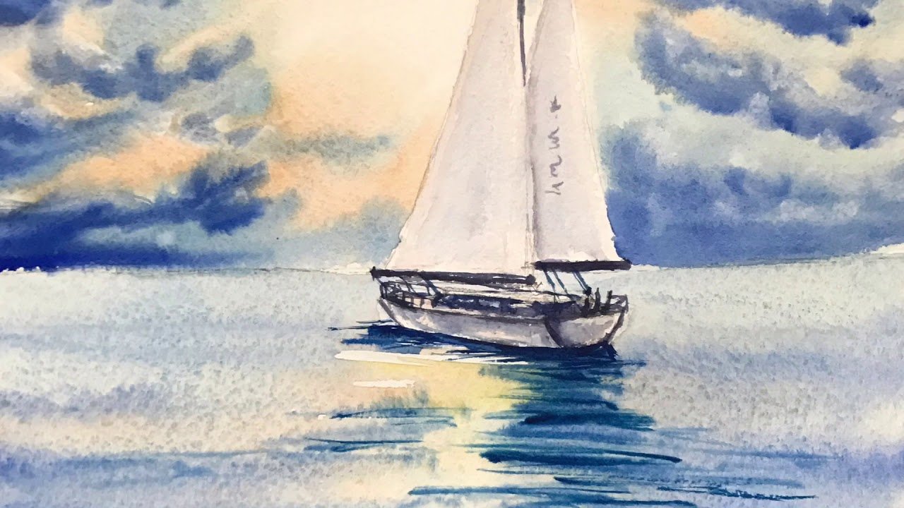 ![Терри Харрисон Акварельные пейзажи море корабль]()