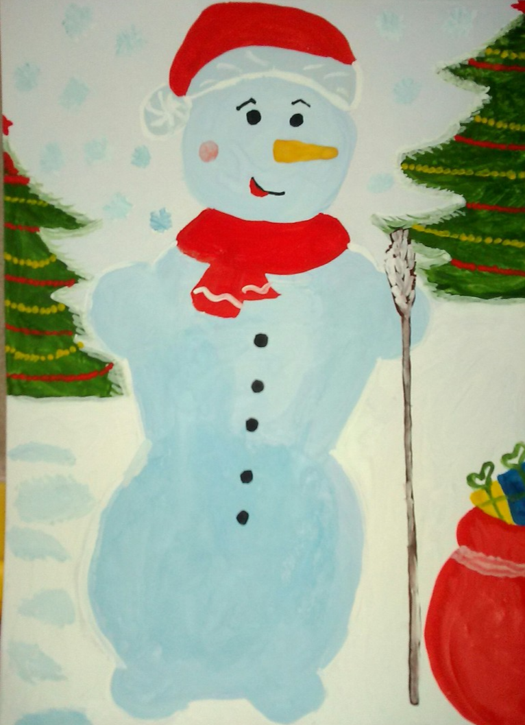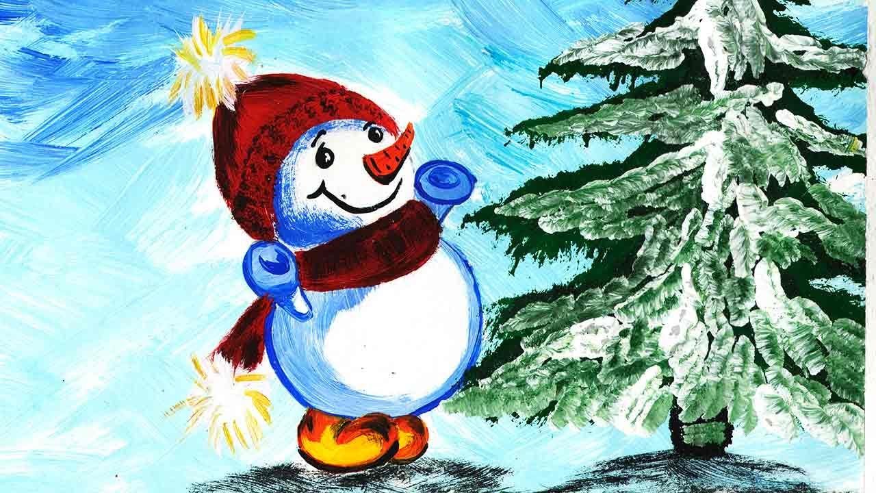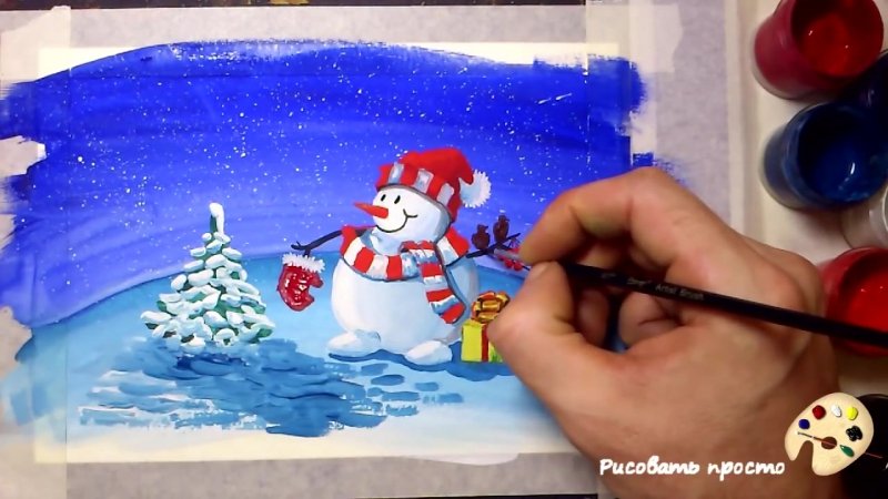 ![Новогодний рисунок гуашью для детей поэтапно]()