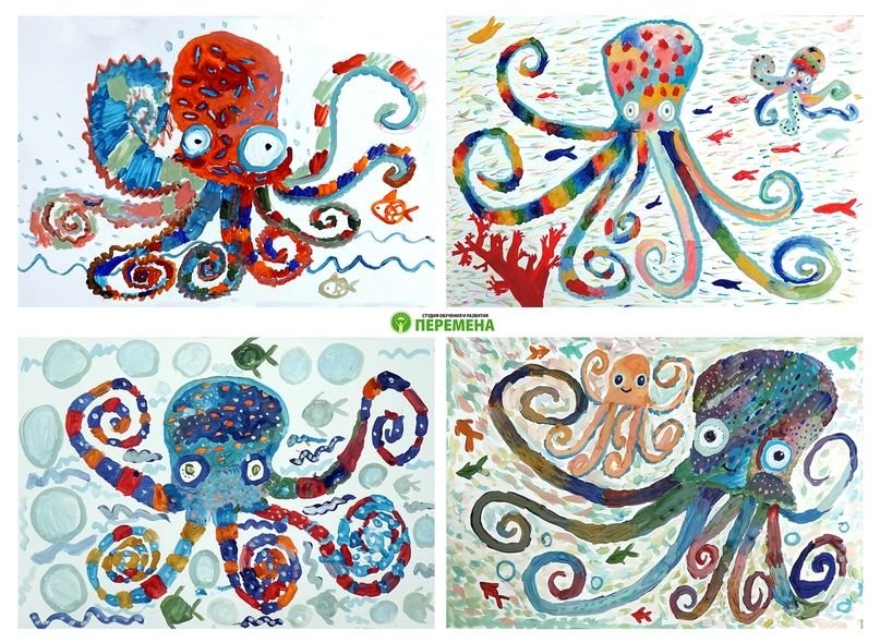 ![Осьминог рисование для детей]()
