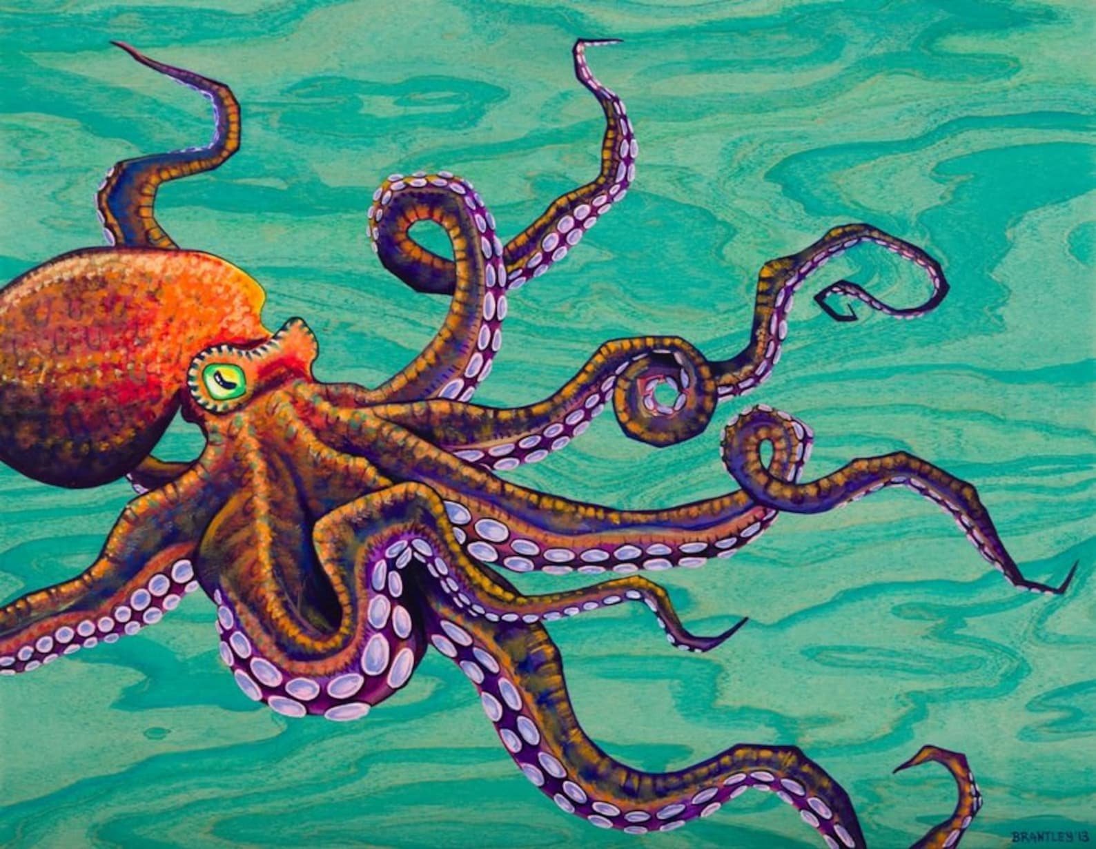 Осьминог картина акрилом