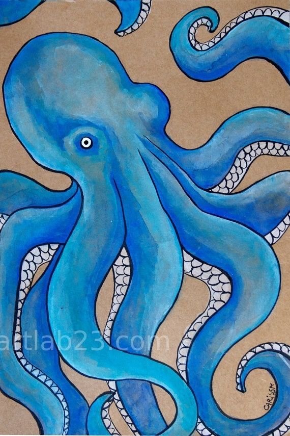 ![Осьминог картина акрилом]()