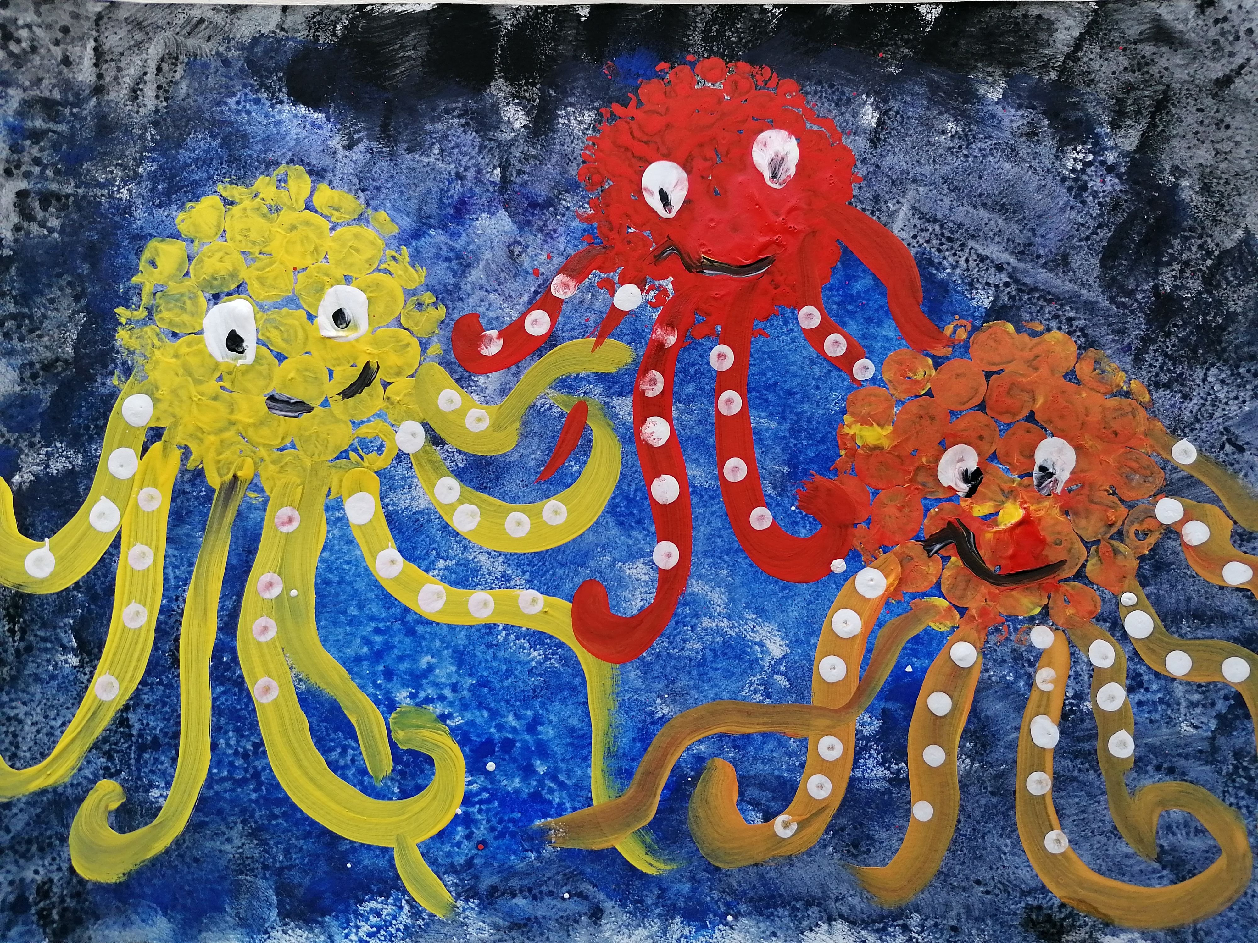 Осьминожка гуашью