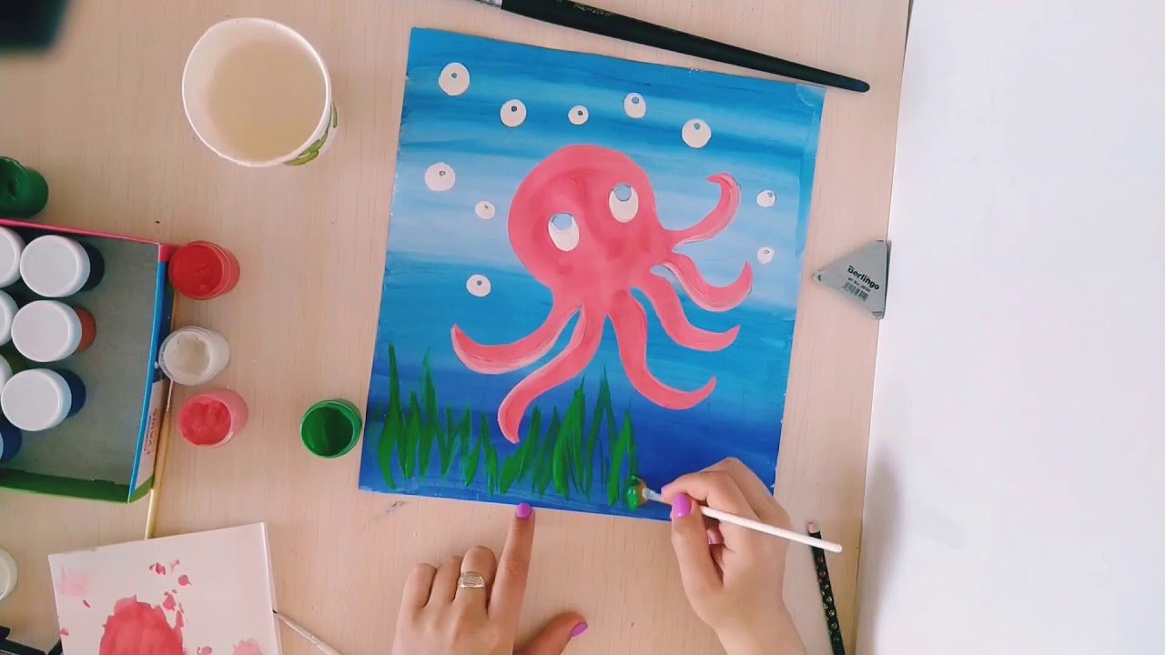 Рисование гуашью осьминог