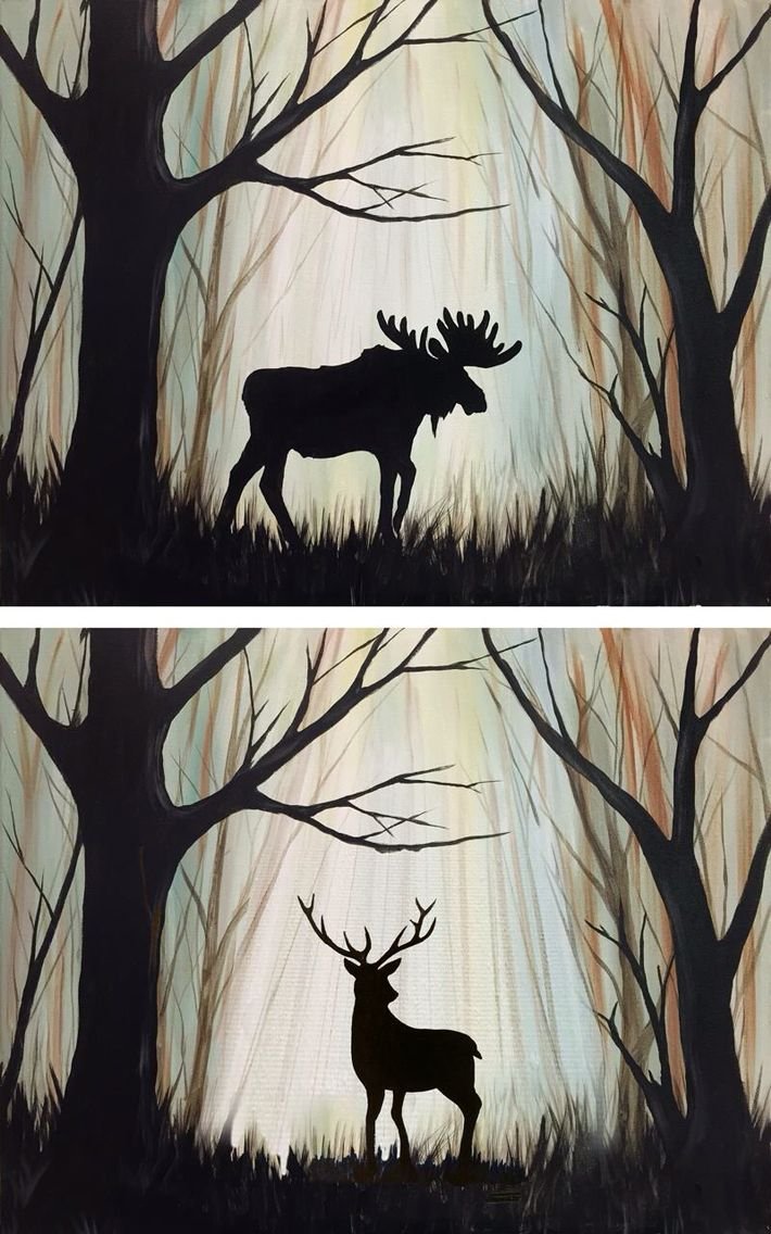 ![Картина олень в лесу]()