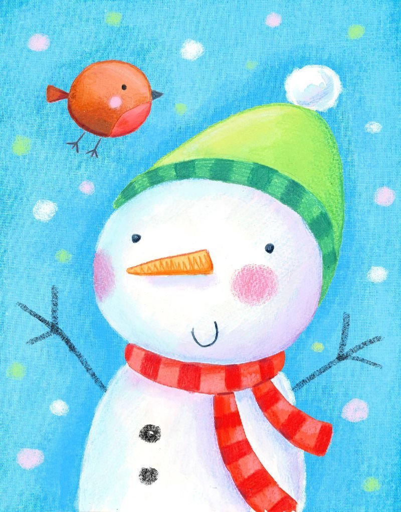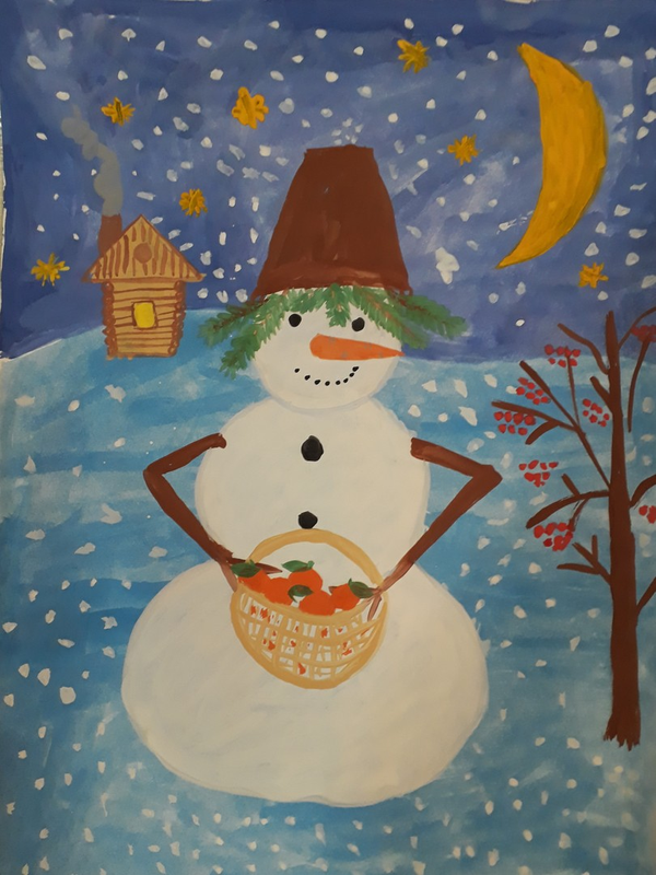 ![Снеговик гуашью]()