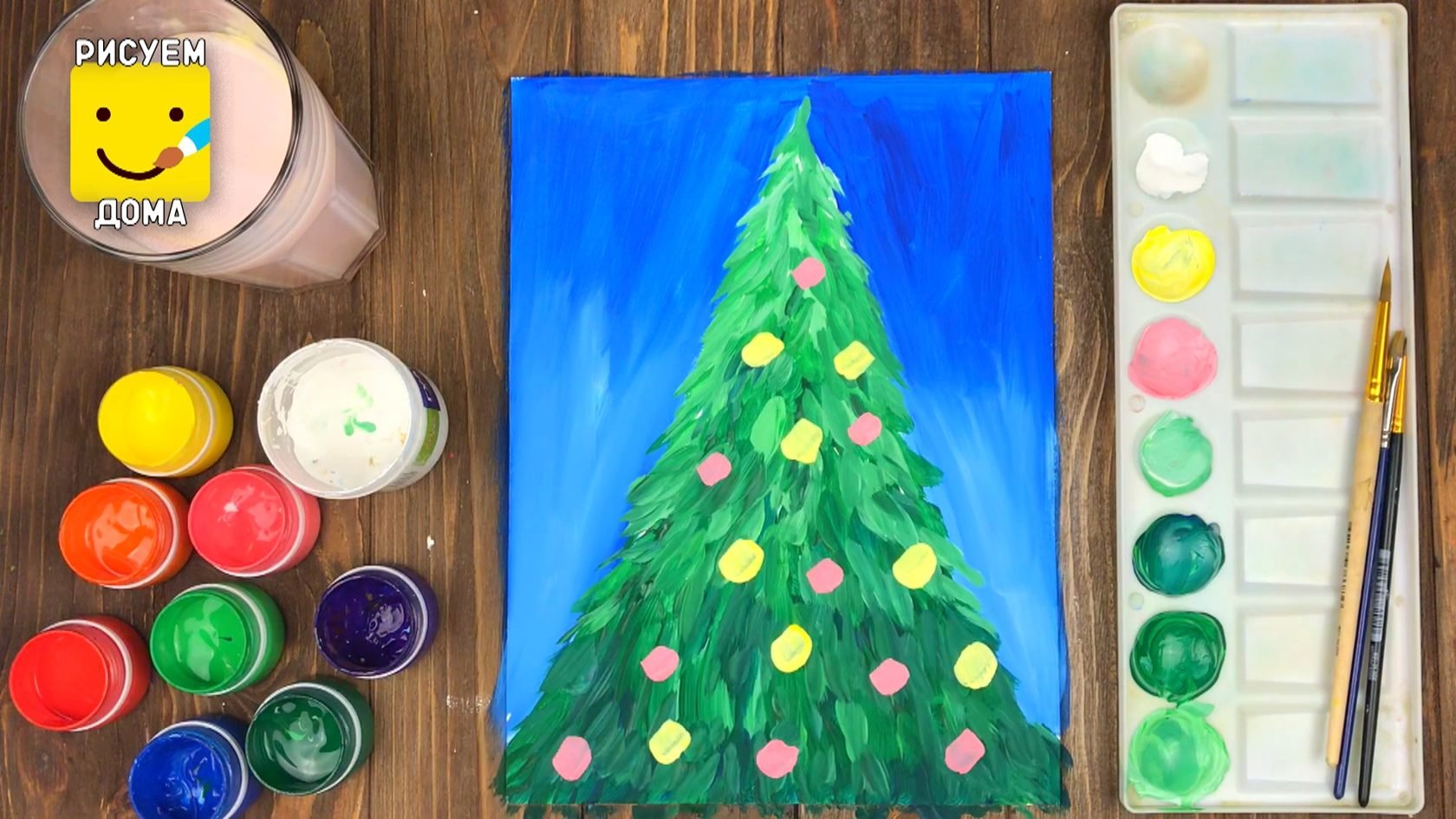 ![Рисование гуашью для детей елку]()