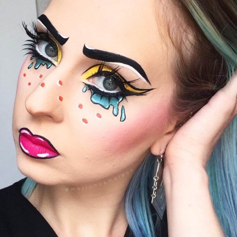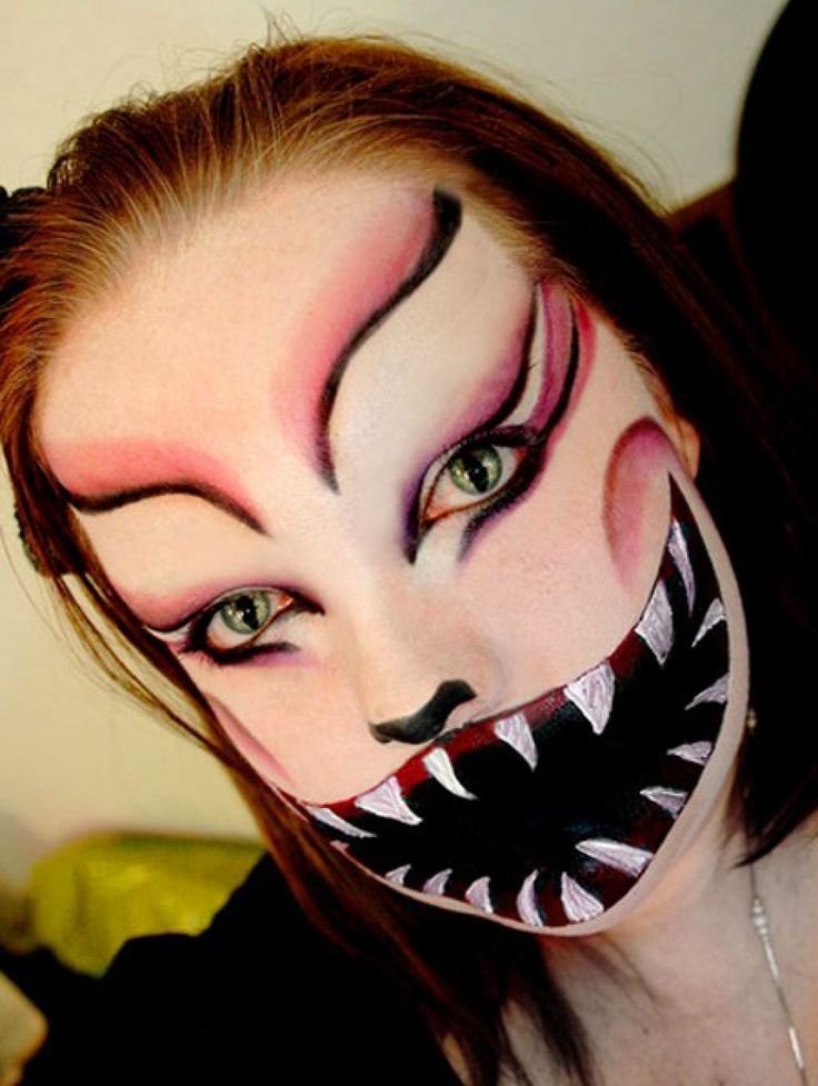![Лёгкий макияж на Хэллоуин гуашью]()