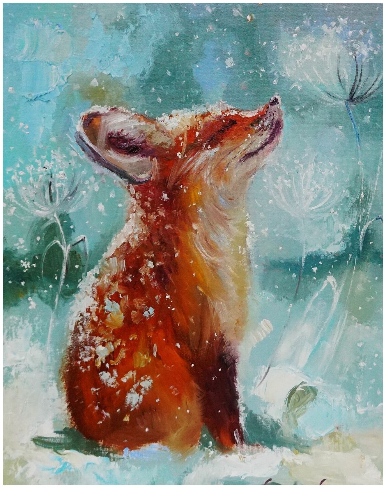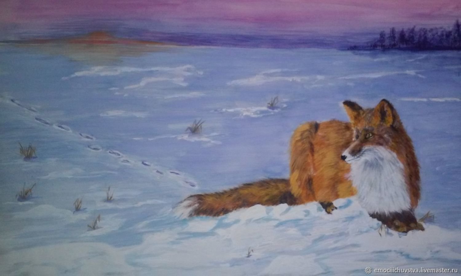 Рисунок "Лиса на снегу" выполнен с использованием техники гуашь, что придает ему особую выразительность и живость. Эта картина олицетворяет нежность и изящество лисы, которая прекрасно вписывается в зимний пейзаж. Белый снег и холодные оттенки добавляют образу дополнительную атмосферу мистического и загадочного. Композиция рисунка мастерски передает движение и грацию животного, а также создает ощущение его присутствия. Это произведение идеально подойдет для украшения интерьера и станет ярким акцентом в любом помещении.