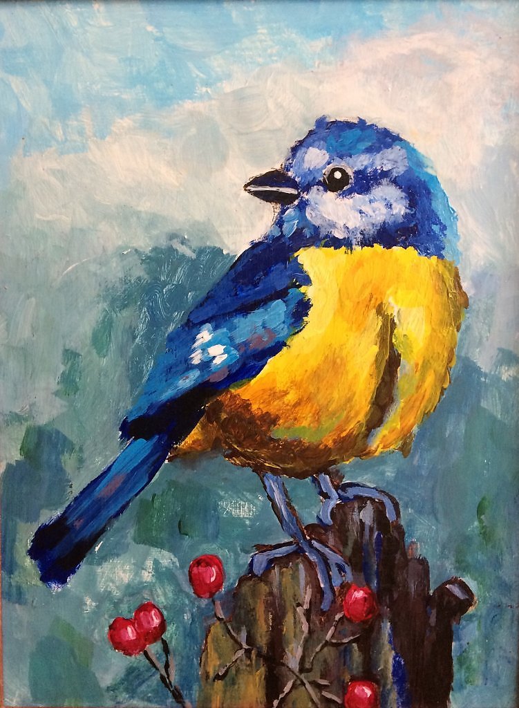 ![Синичка гуашью]()