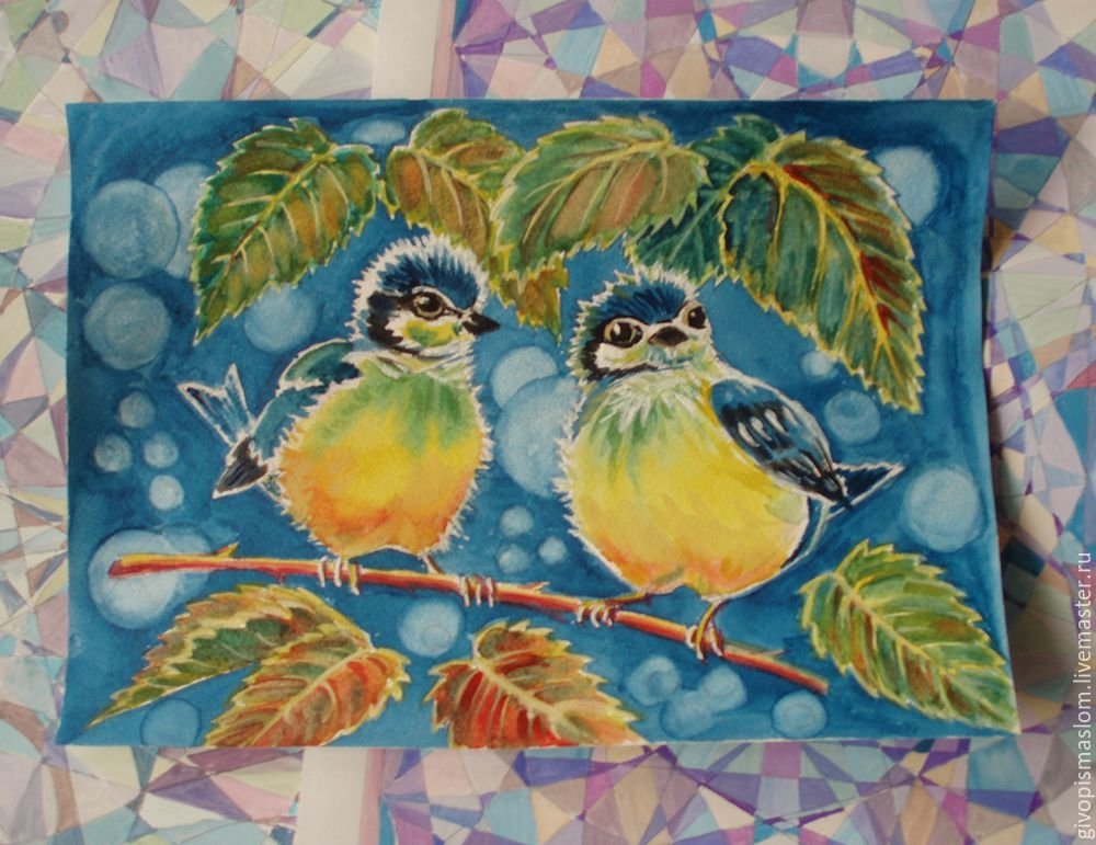 Птицы на ветке живопись