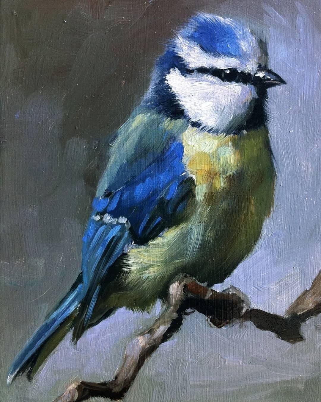 ![Птицы на ветке живопись]()